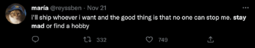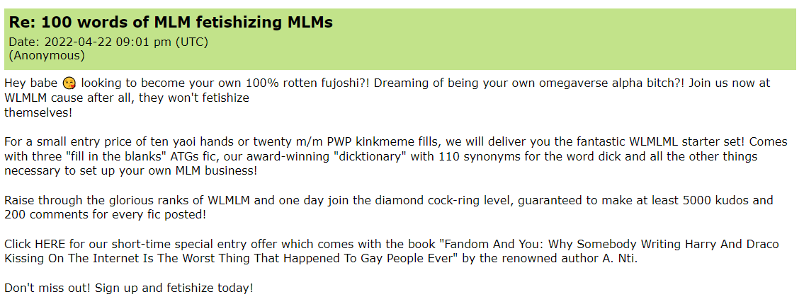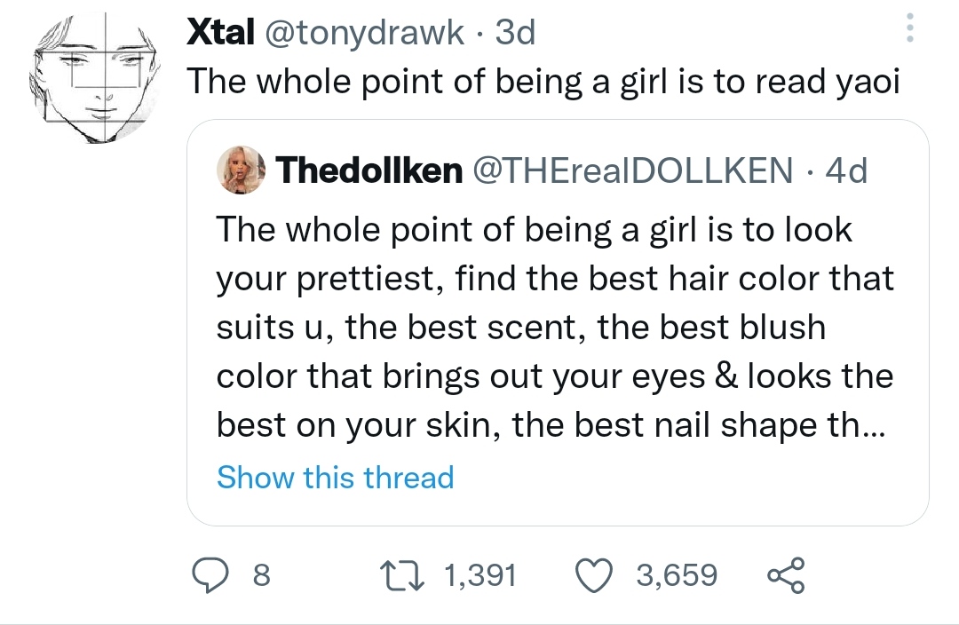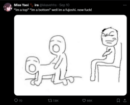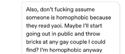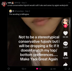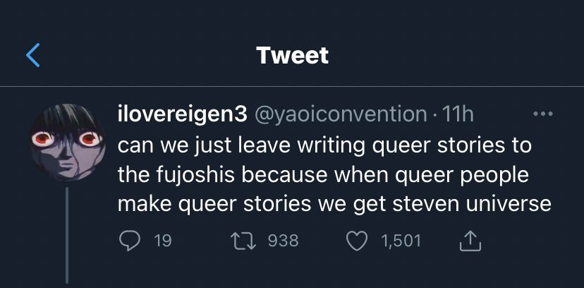 She's right, you know. The normal and sane LGBTQ people find stuff made by fujoGOD is interesting than whatever the sjw queer stories make. KEK