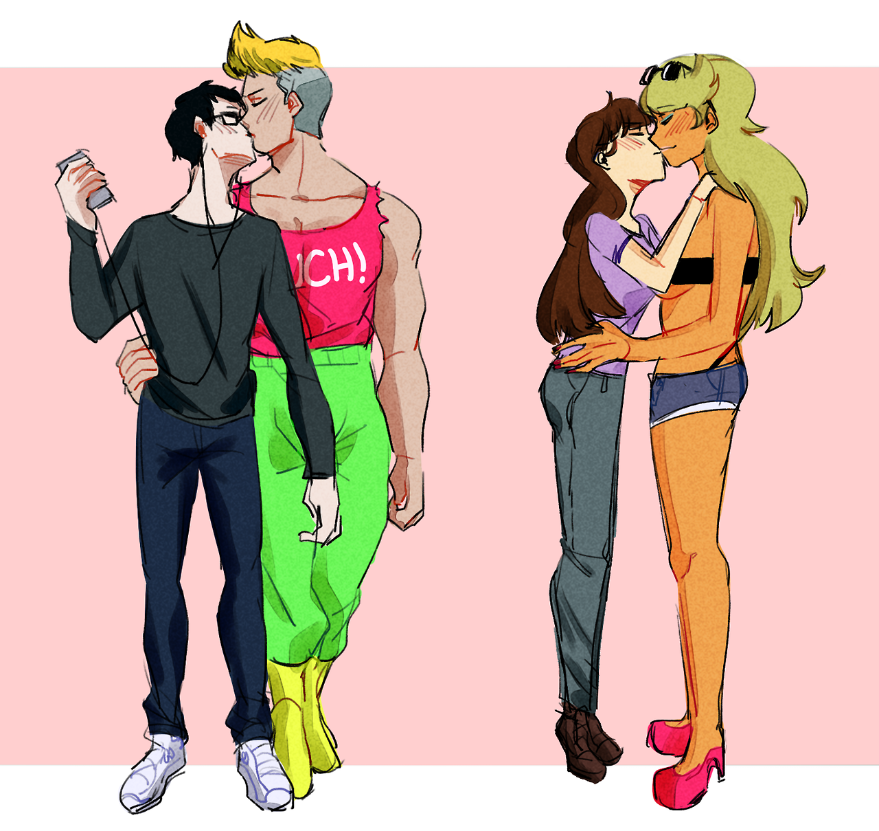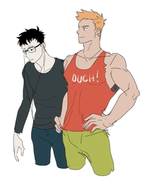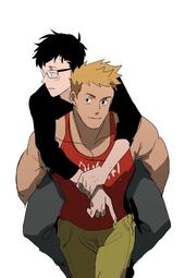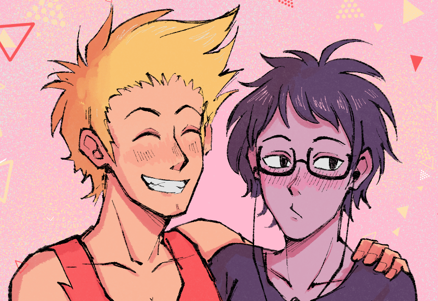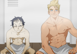 Also reminds me of 4chan board-chan bl, especially /fa/ x /fit/