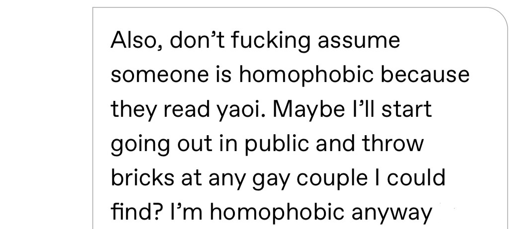 >>8195He posted the response pic AFTER finding out what yaoi is? Based