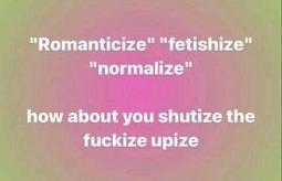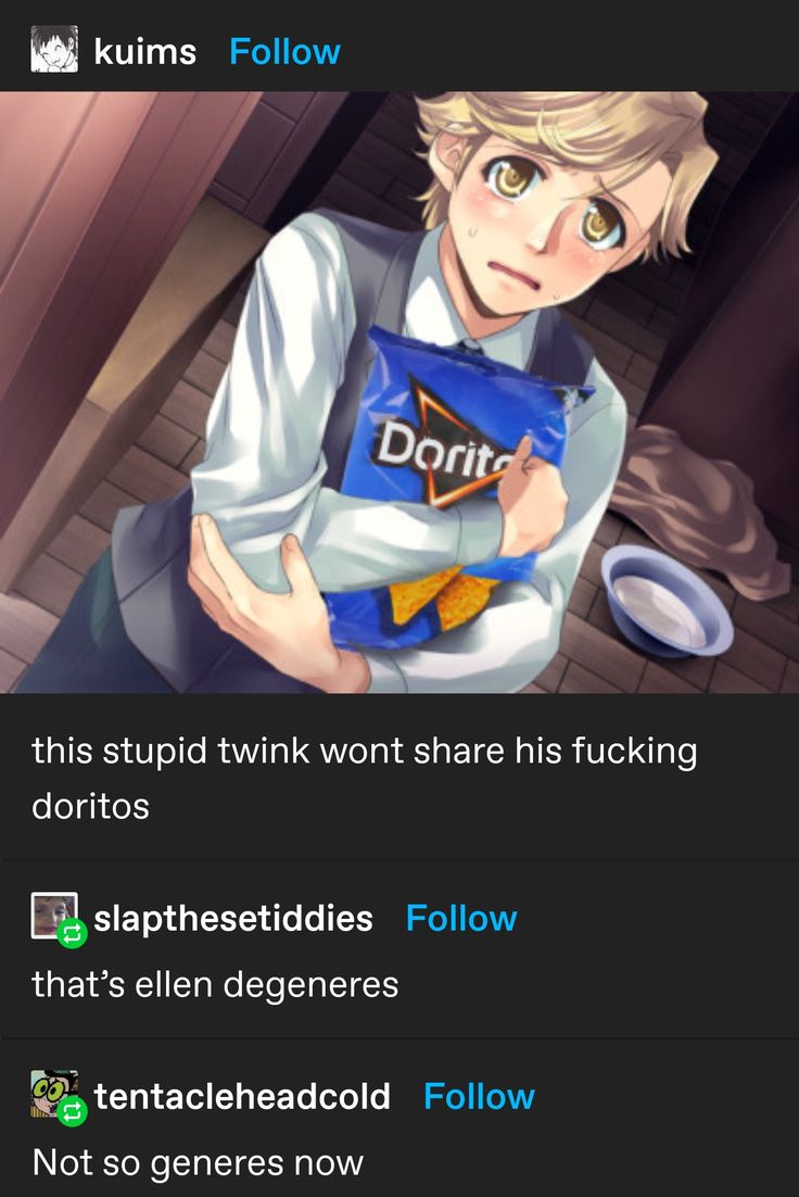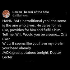 >>4686>If I don't like how people characterize my favorite when he's the uke, then I stop reading things where he's the uke.It's this. Sometimes ships are ezmode switches, sometimes I just want to see that twink obliterated, sometimes and most wretched of all is that popular seme/uke fanons pollute the tag. The most common offenders are semes that become a little too daddy when they are kind of a dipshit in canon and ukes that become spineless or tsundere when they are actually very headstrong (and lately this translates into them having a pussy). I have absolutely dropped an objectively "good" fic because the dynamics skewed too far into fanon.