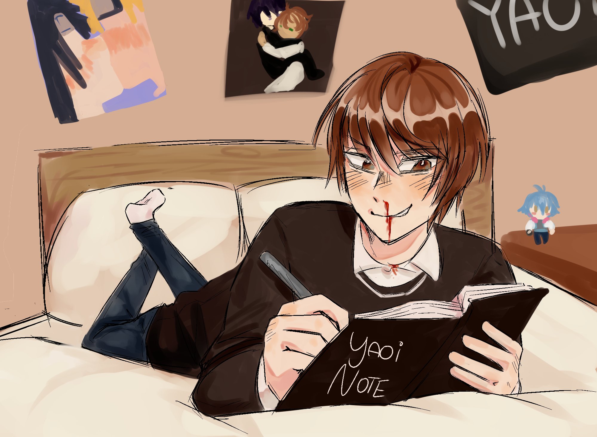 I don't know why but this always cracks me up considering that's how I'm lying in bed and scrooling through a mobile carousel of sites like Pixiv, IBs, AO3, and Twitter.