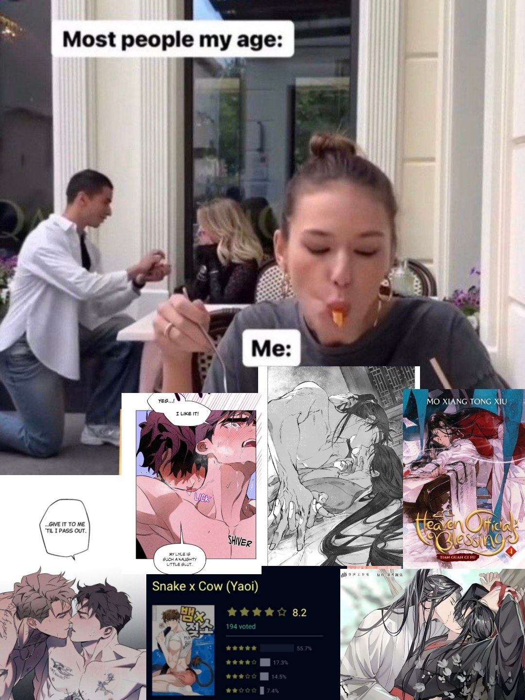 >>5484>Snake x Cow?? No idea what that is either lol. I only posted it because it was funny, I actually avoid korean and chinese comics and LNs like the plague kek
