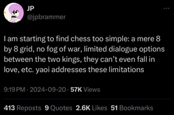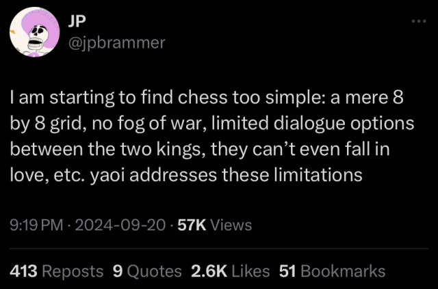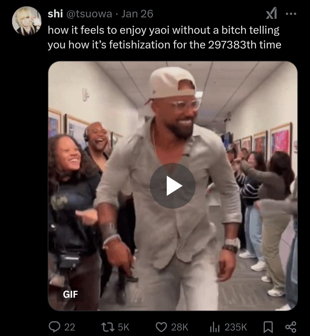 >>4704Fuck I relate so hard, its so tiring trying to befriend other fixed ship enjoyers but they have an extreme obsession over sex (which is granted cause the sex positions *are* the focal point after all) but I wish there was more to it, like discussion about the ship's dynamic and what led to the characters meeting rather than just "x character takes it up the butt lul" which I can enjoy occasionally but cmon, there has to be more than that right?