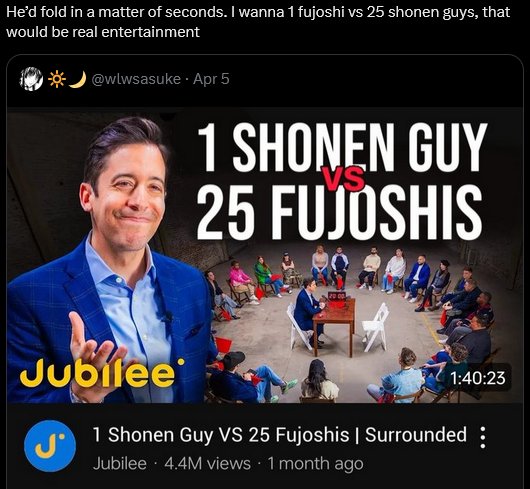 t. fujo who have a lot of fag friends who enjoy a lot of media catered and made by fujos.