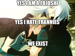 >>1388I feel this post on a spiritual level. Nona, you need to be my gf. I'm a lonely fujobian who is sick of trannies and Twitterfags, they're absolute vermin in fandom spaces.