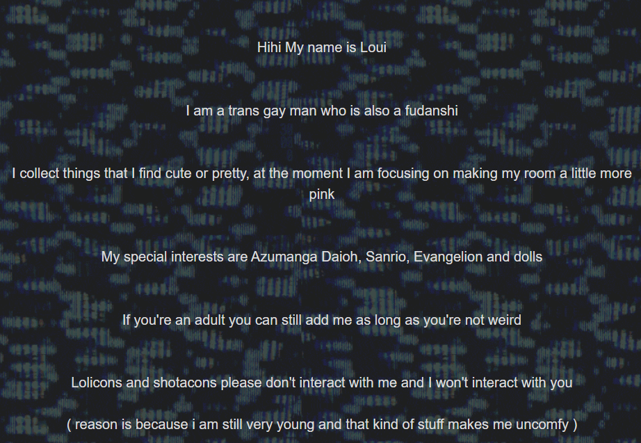 >>8364Honestly I'd be more concerned at the fact that this is an underage kid already groomed into being an aiden