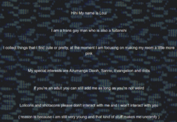 >>8429AM from I Have No Mouth and I Must Scream, which is a short story especially iconic for its 90s videogame adaptation. It has always been popular among science fiction and gothic lit circles but most of its online discussion was limited to 4chan's /v/idya board and some slavic forums, with a lowkey fujoshi presence on Tumblr and AO3. In the last few years it has exploded in popularity and conversely attracted a ton of annoying people, and with that the Tumblr side has shifted from fujo-dominant to being comprised of young yumes who get into drama like the one described above.