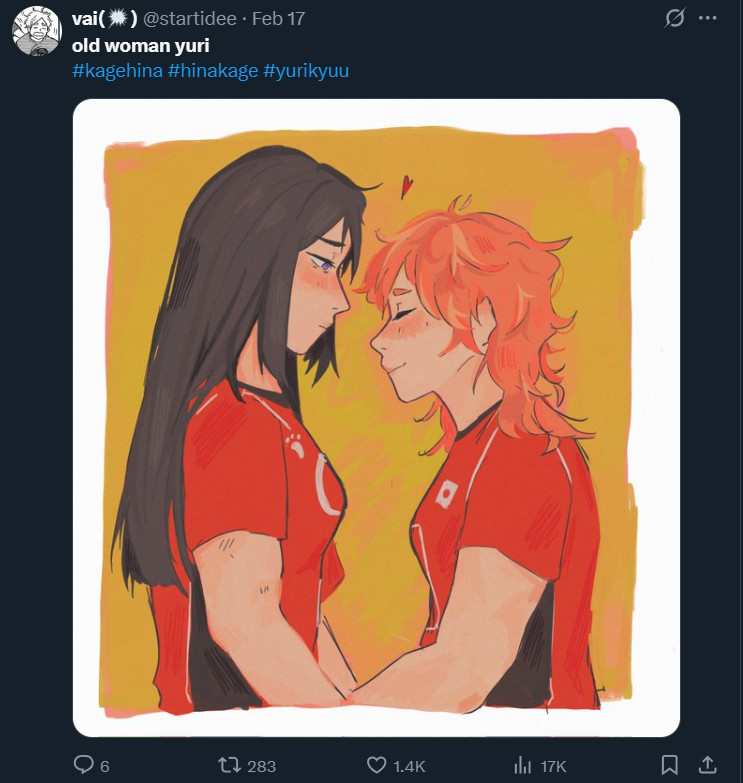 I can only see them as yumes pretending to be fujos, as they seem to be happy as long as their seme is the one putting his dick in a hole. If you're actually a fujo with strict and fixed preferences in regards to positions, I expect the same energy for keeping your ship gay. If must see your ship as girls, genderbend both of them.
