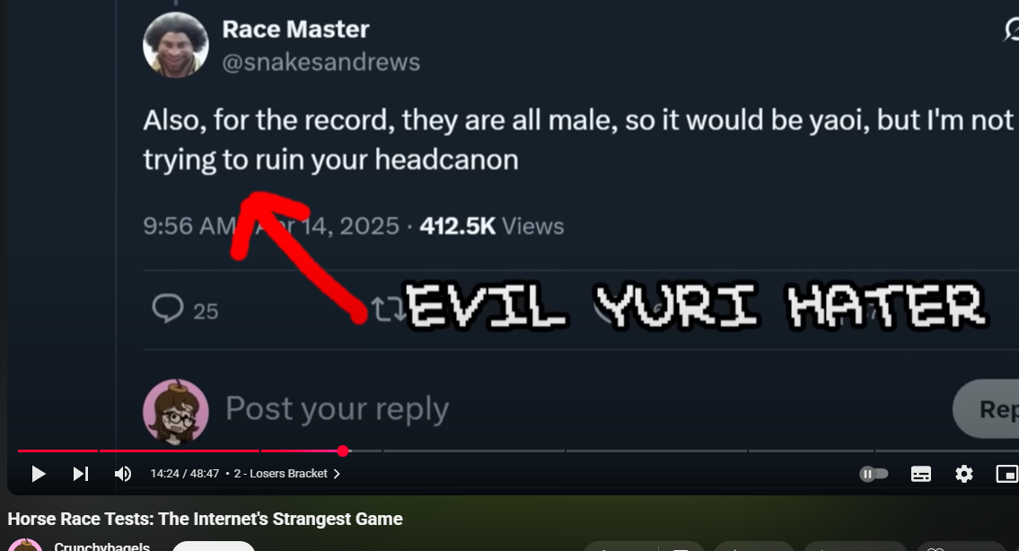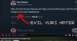 >>8900>>8899It annoys me when twitter teenagers group yuri and yaoi together or claim yuri is better than yaoi in some way (because it's much less popular in fandom among women).