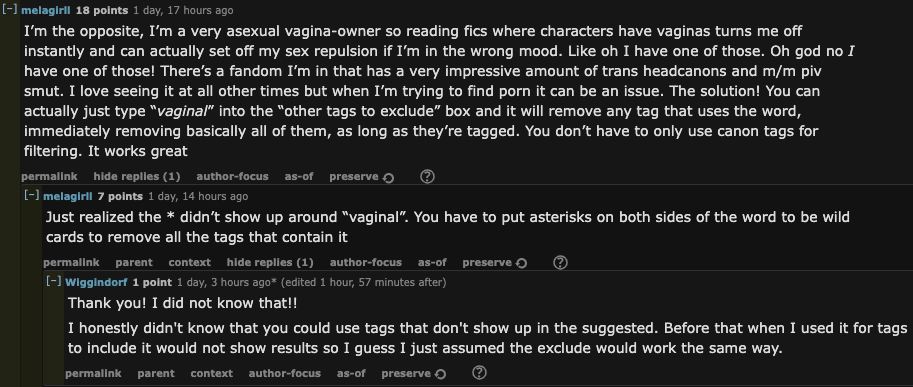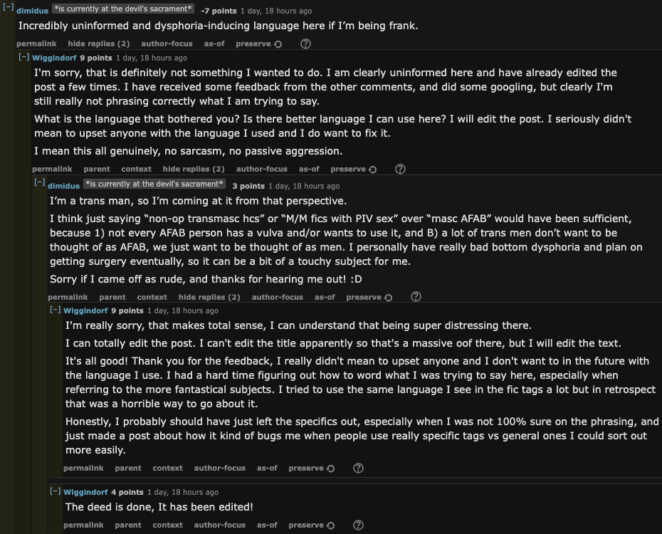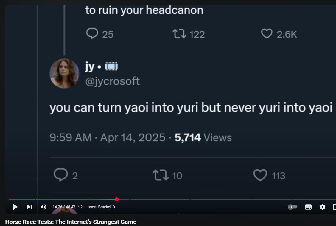 >There are probably 2 fics in the entirety of AO3 that I enjoyedFeel free to throw the names out if you can remember, you'd think out of now 19k fics I'd have read more than 100 good ones, but I don't think so. Absolutely insane the yaoi ship has more fics tagged with pregnancy than the canon lesbian ship. This timeline is something else…