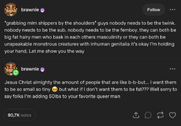 Hell I'd probably be down for a fat hairy ship if a single person wrote it in a way that wasn't either 1. bland body positivity moral high-horsing or 2. just fetish porn