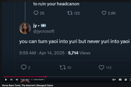 >>8927This. It drives me insane that people seem to think yuri is just genderbent yaoi and yaoi is just genderbent yuri. They have literally nothing else in common besides portraying same sex relationships. They have a distinctively different community and stories, the tropes and style of artwork are completely different, the genres' origin stories and how they came to be are completely different. You can't just tell a fujo that she needs to love yuri too or else she's being a lesbophobe hypocrite because it doesn't work that way, it would be like telling a soccer fan to love baseball too because they're both ball games.