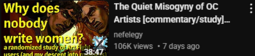 >>10841 >the switch from writing as a passion to treating it as 'contentThis mindset is what ruins not just fandom but the whole internet. Everyone’s trying to monetize (or accumulate clout) and it sucks the soul out of everything. I hate this timeline.