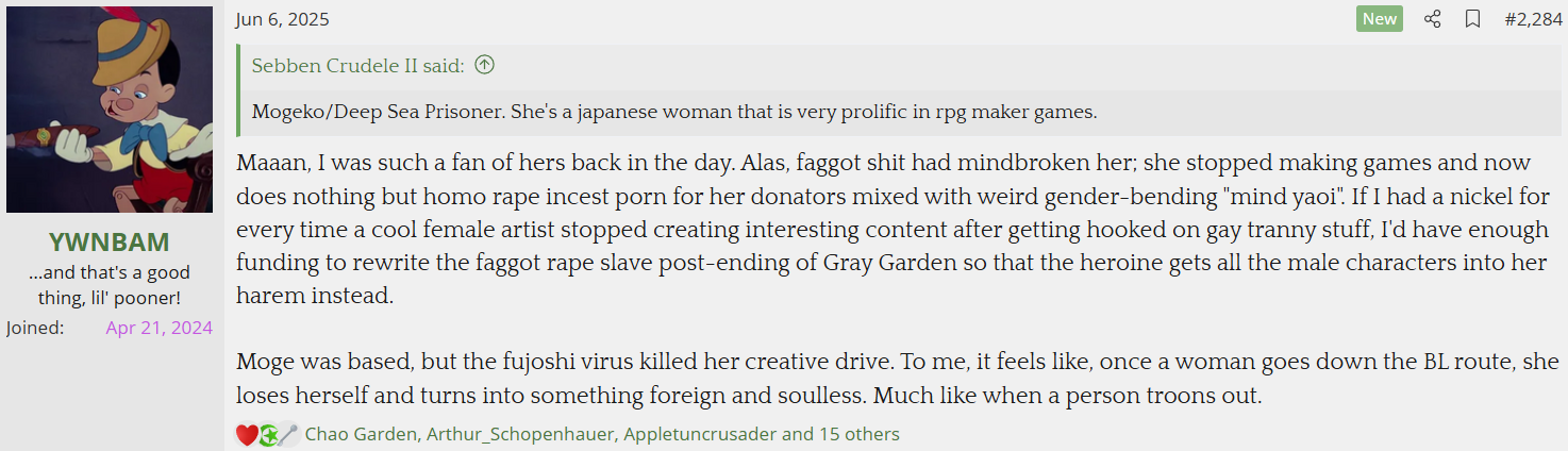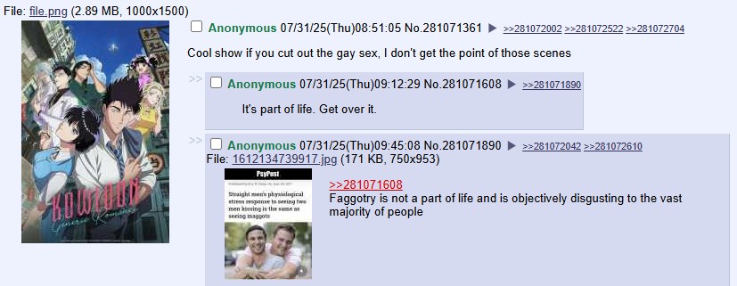 >>9004>the fujoshi virus killed her creative drive blahblahblah mind virusIf there's anything you can criticize fujos for, I don't think it's being boring or soulless kek. Especially coming from Mrs. Yume Het Absolutist over here