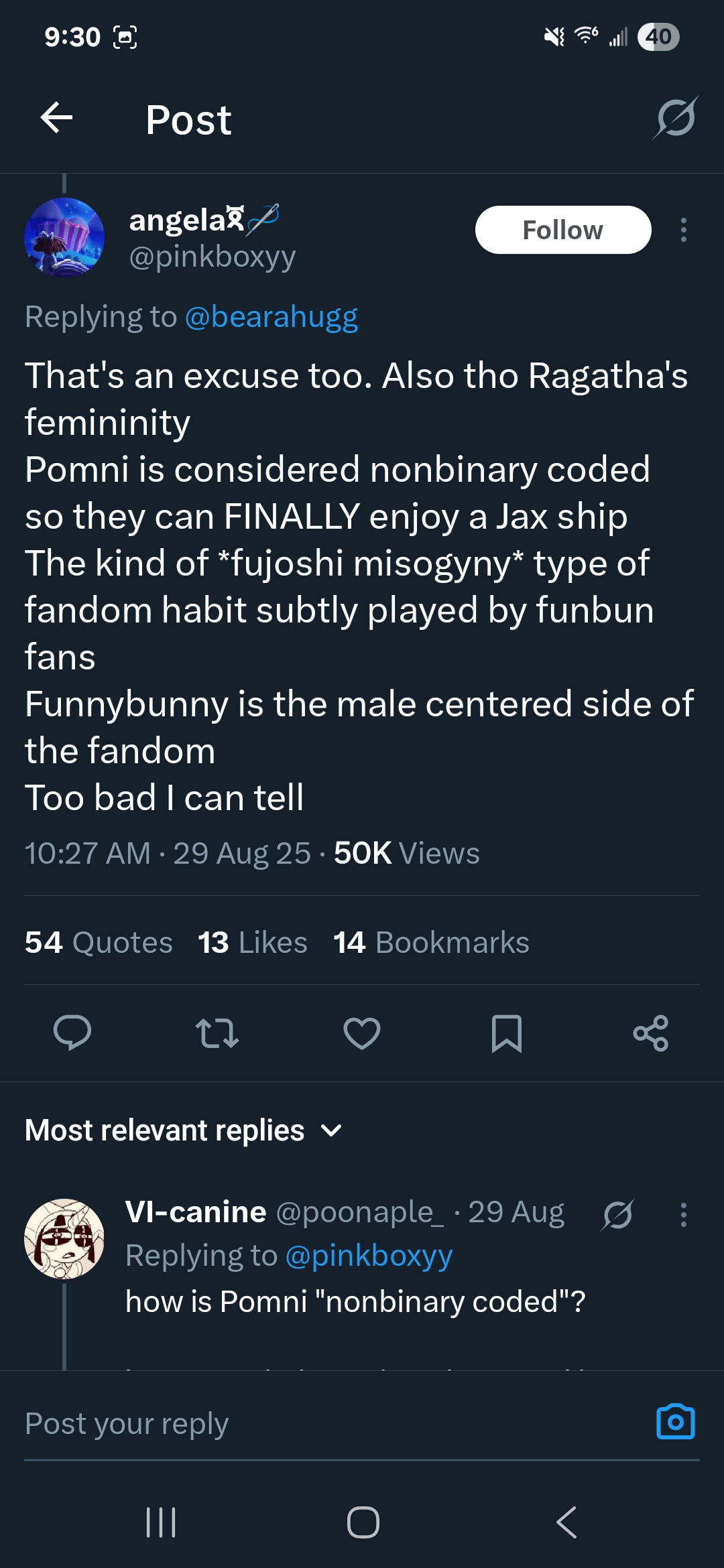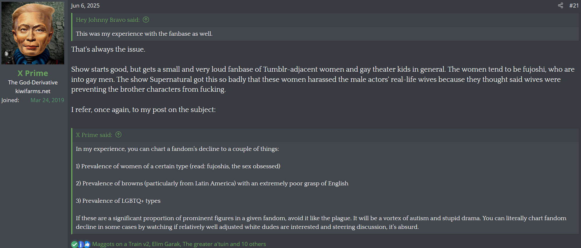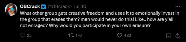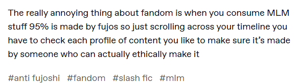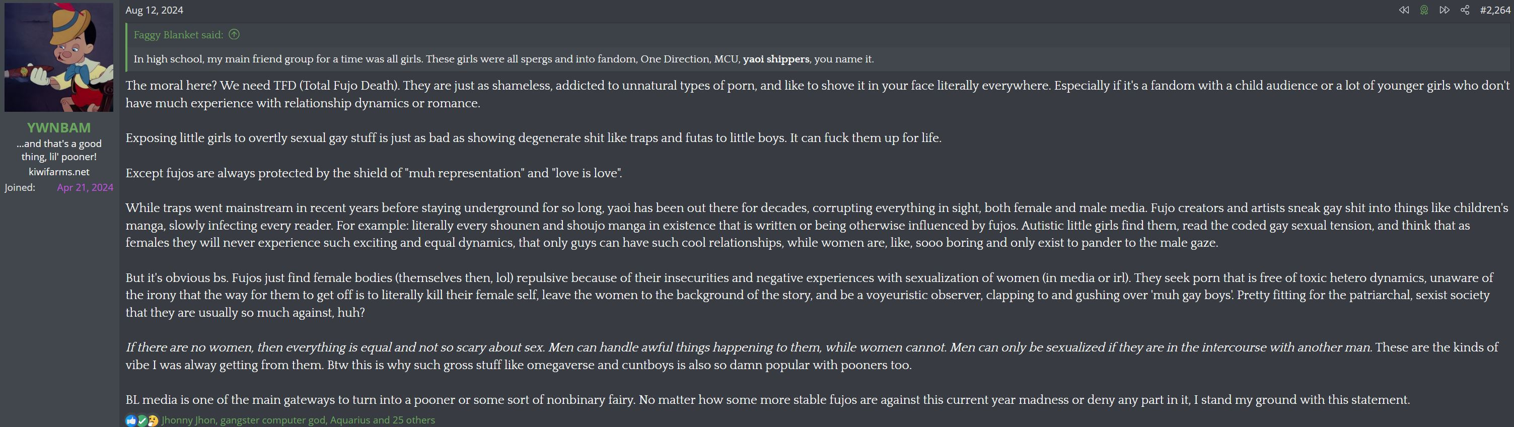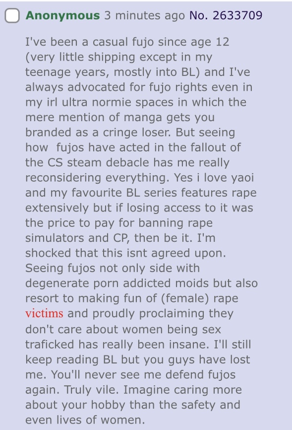 They've got a real issue with fujos who turn ftm, which, fair, but they seem to think that all fujos will poon out at some point.