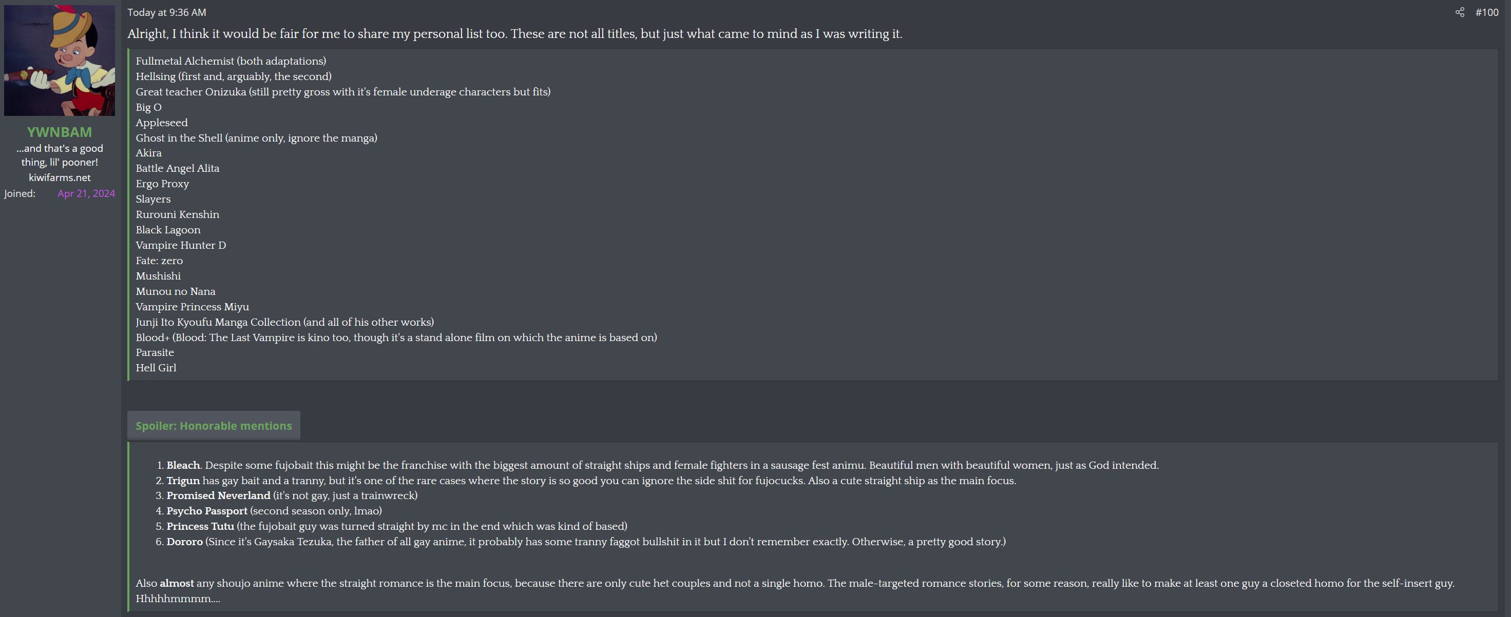 >>9035>>9040As someone who used to regularly browse the farms myself, I think it's almost impossible to be a kiwifarms regular without having other issues.