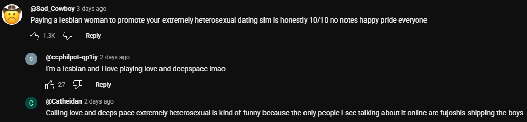 Huge thanks to the love and deep space game becoming widely known, now everyone knows their cringe ass game where they have pov sex with an anime boy, guess that's why they don't want fujos to ship them with each other kek such is karma.