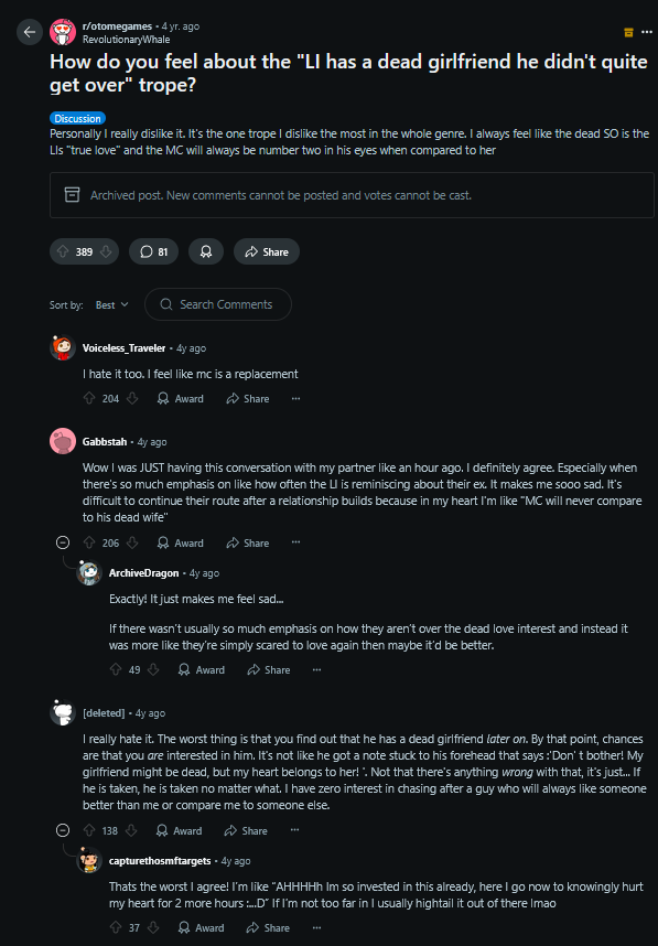 >>10723They're also ignoring that there's plenty of male characters who do get hate, especially from actual men in fandom. Men hate "emo" rival characters that women like, bonus if the guy is popular to ship with the male mc. Men are still raging about Sasuke and Goro Akechi to this day. Not to mention incels raging about Scaramouche from Genshin Impact so much because they hate that girls like him.
