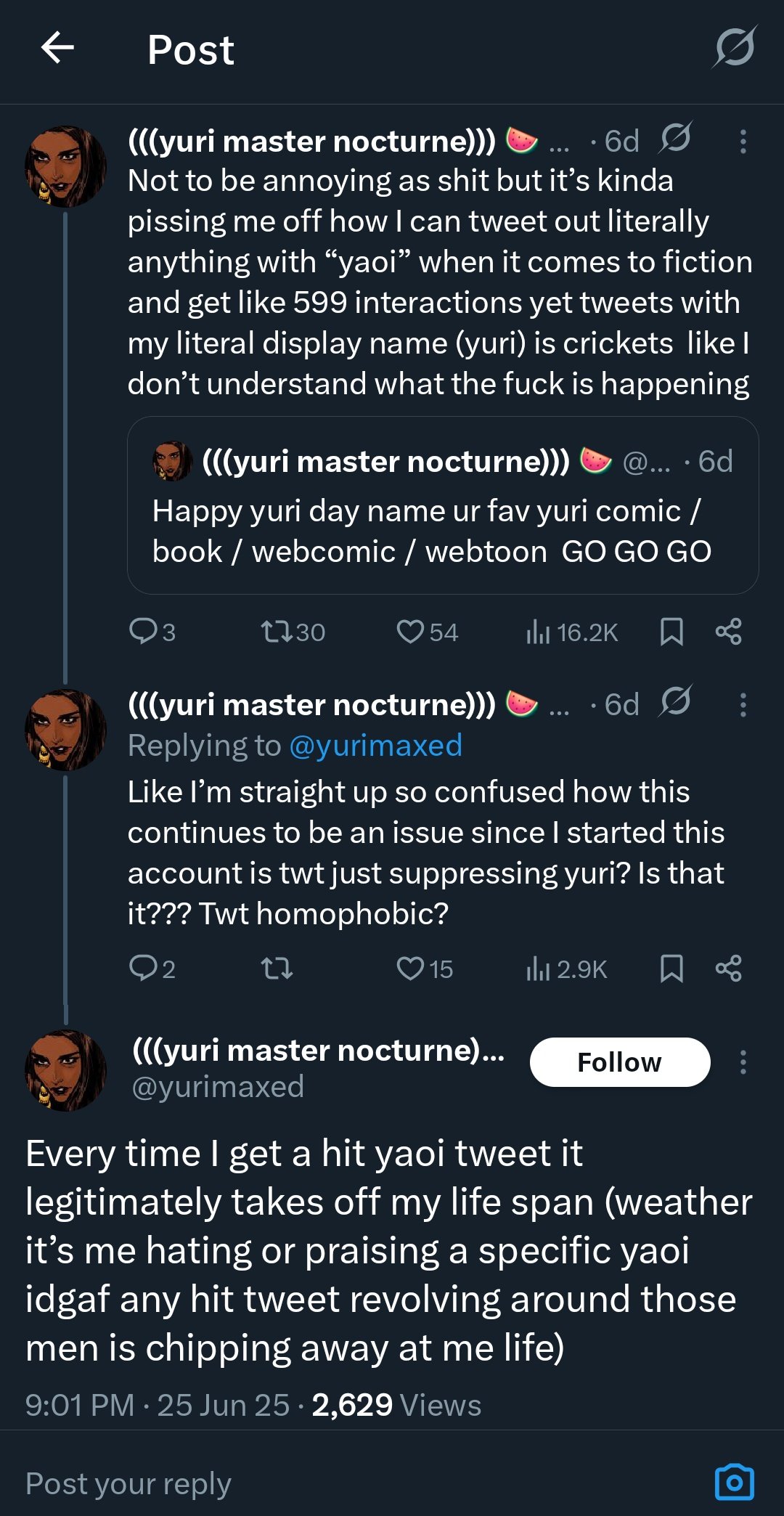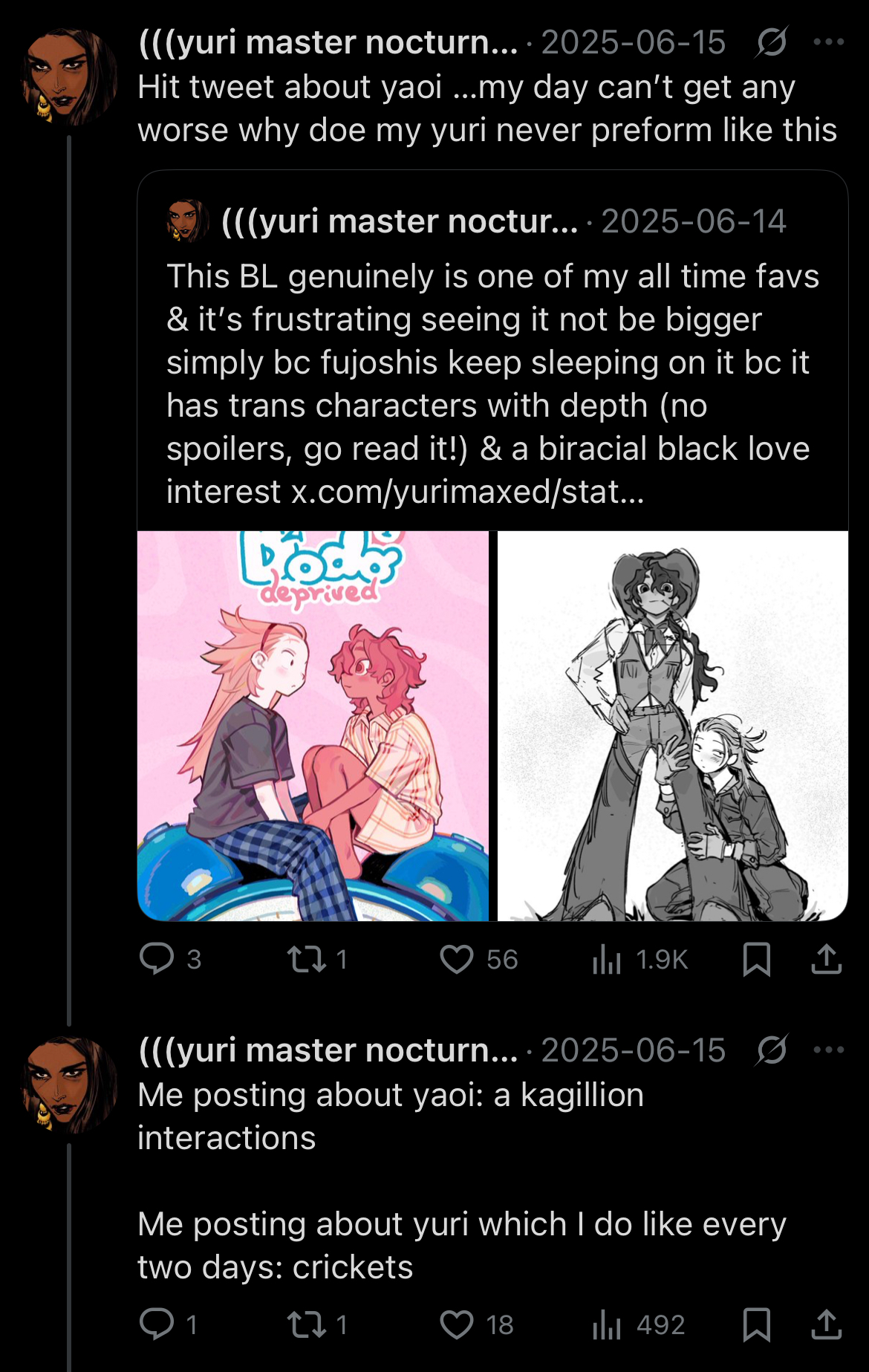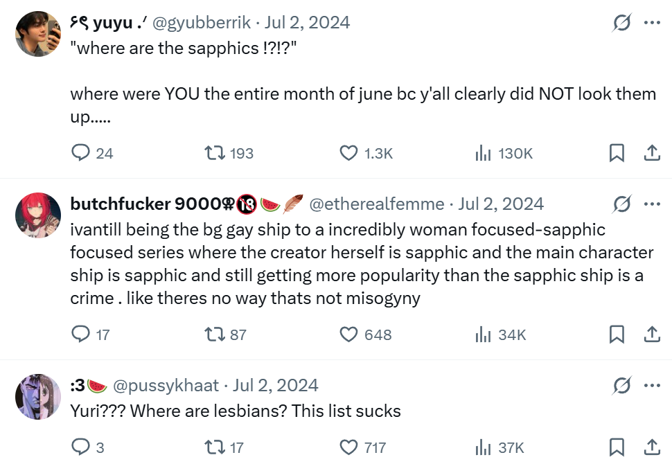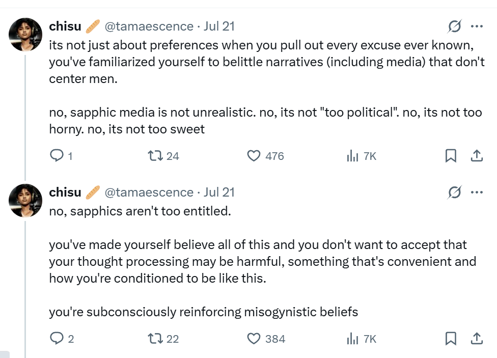 The fujo communities may have their issues, but with yuri it's somehow even worse because half of these