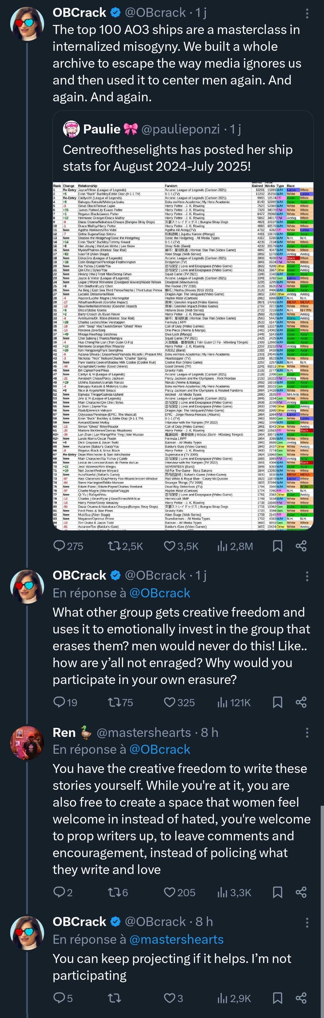 >>10756>hate the vamp driving a wedge between them. Exactly this.It’s never about female characters, It’s about protecting the character they’ve built an identity around. They see any woman or man who outshines their fav or simply gets more screentime as a threat.