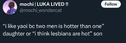 >obsession with K-pop and their lesbianity is more about hating men than loving women.Because it's cool to hate men and pretending they are lesbians until other girls like the husbandos they like, or god forbid try to make them gay, then it's war on women kek