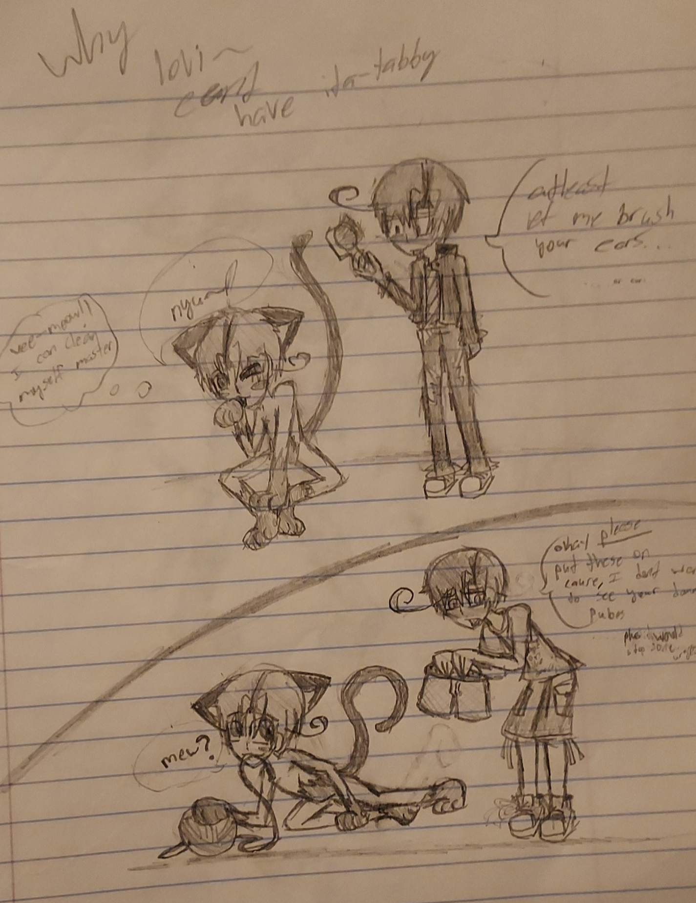 I also keep my folder of drawings just on a table I have my laptop on though I hope nobody snoops. Would be weird to see pictures of my OC getting tortured. I feel bad for drawing him looking all happy and cute just to know that he ends up being raped and destroyed. Teehee,