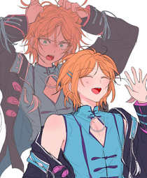 >>984Alright, so I'm writing about these two long lost twin brothers who canonically have a bit of a rivalry going on. They don't get much screen time together but they are occasionally shown helping each other out begrudgingly.