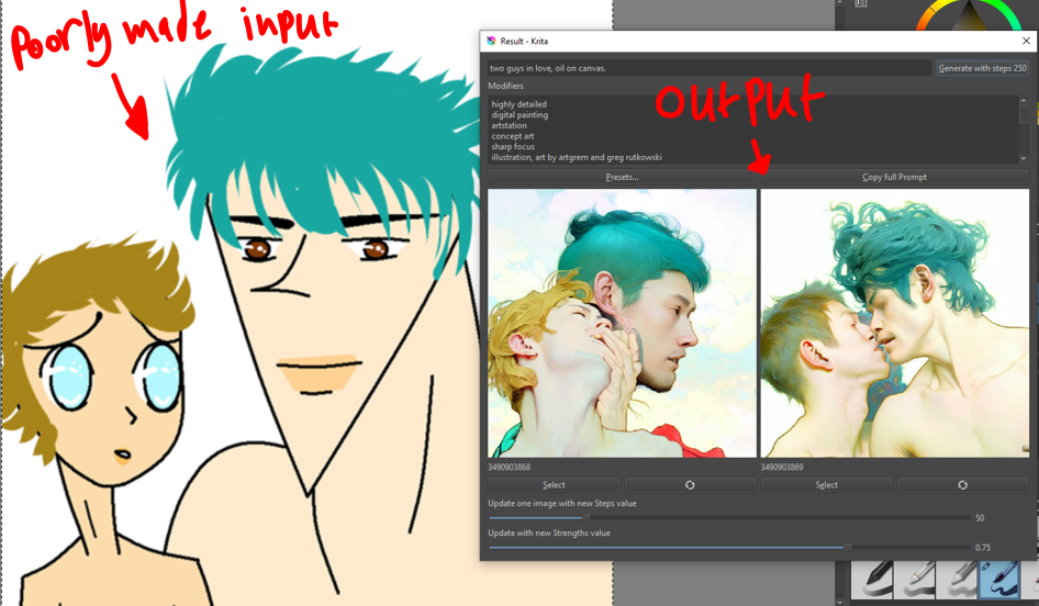 I have gotten my hands on Stable Diffusion and added it as a plugin on my Krita software, the process was more simple than what I expected and have been addicted to it for the past two days trying to create various yaoi like manga cover images.