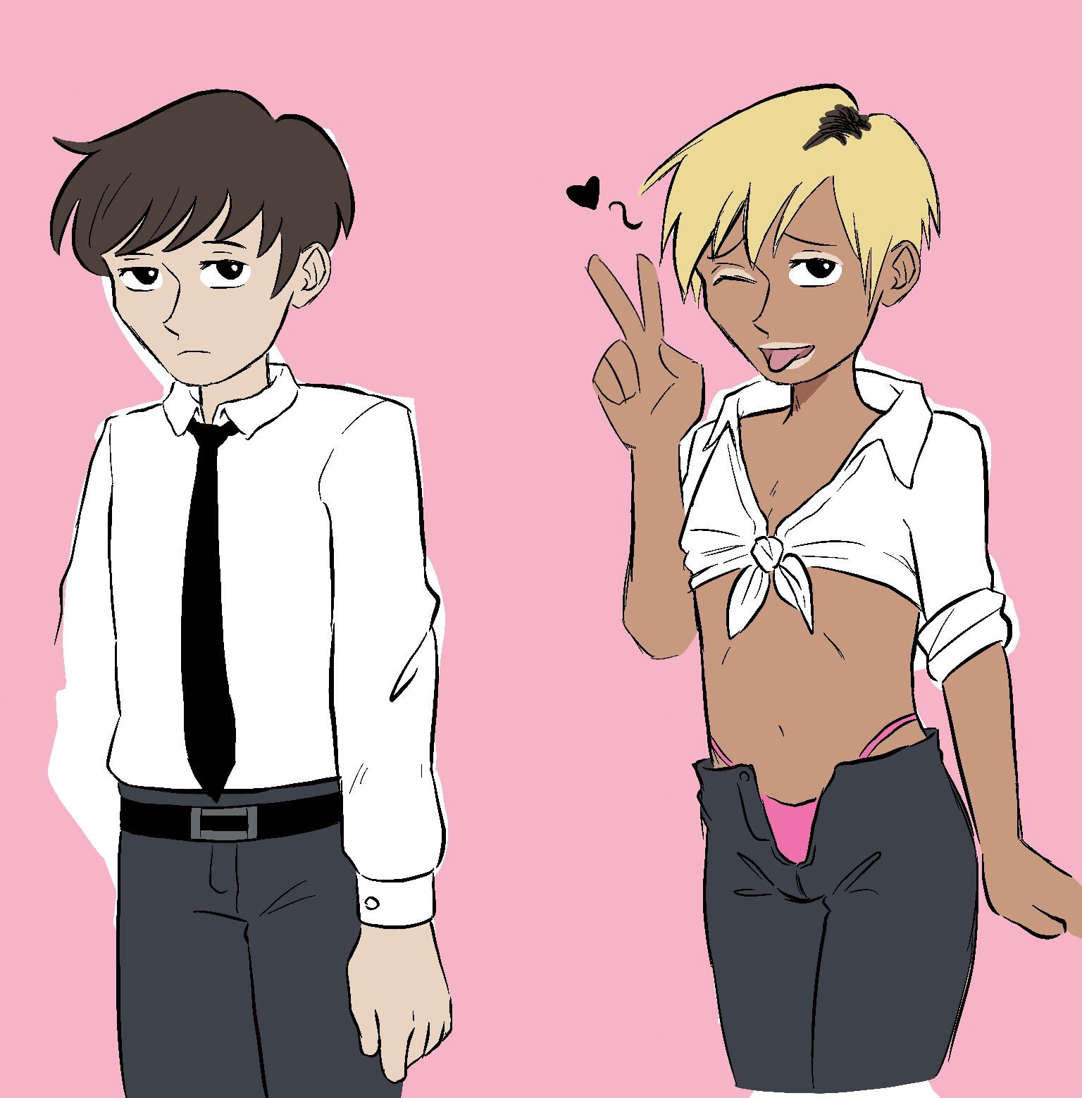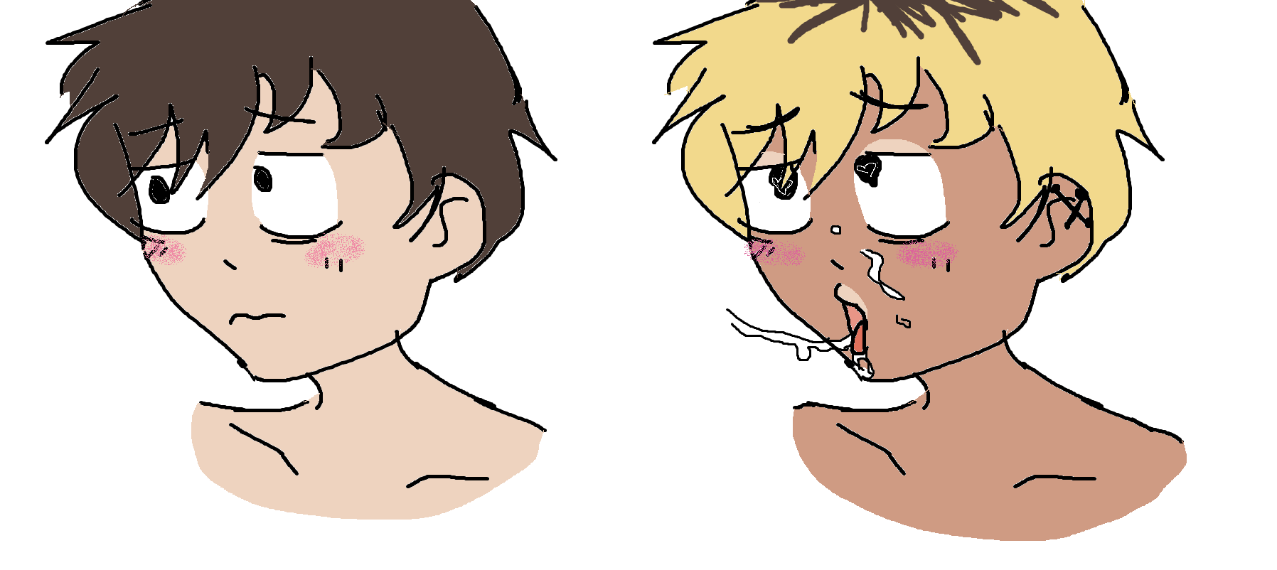 i have this ms paint doodle of a highly coomerish idea of mine in which an office worker guy ends up turning into the stereotypical hentai gyaru because his boss at his company is into that. so he'd come up and sugg on the boss's peenor under the desk etc…. if anyone wants to draw him or add more to his story feel free