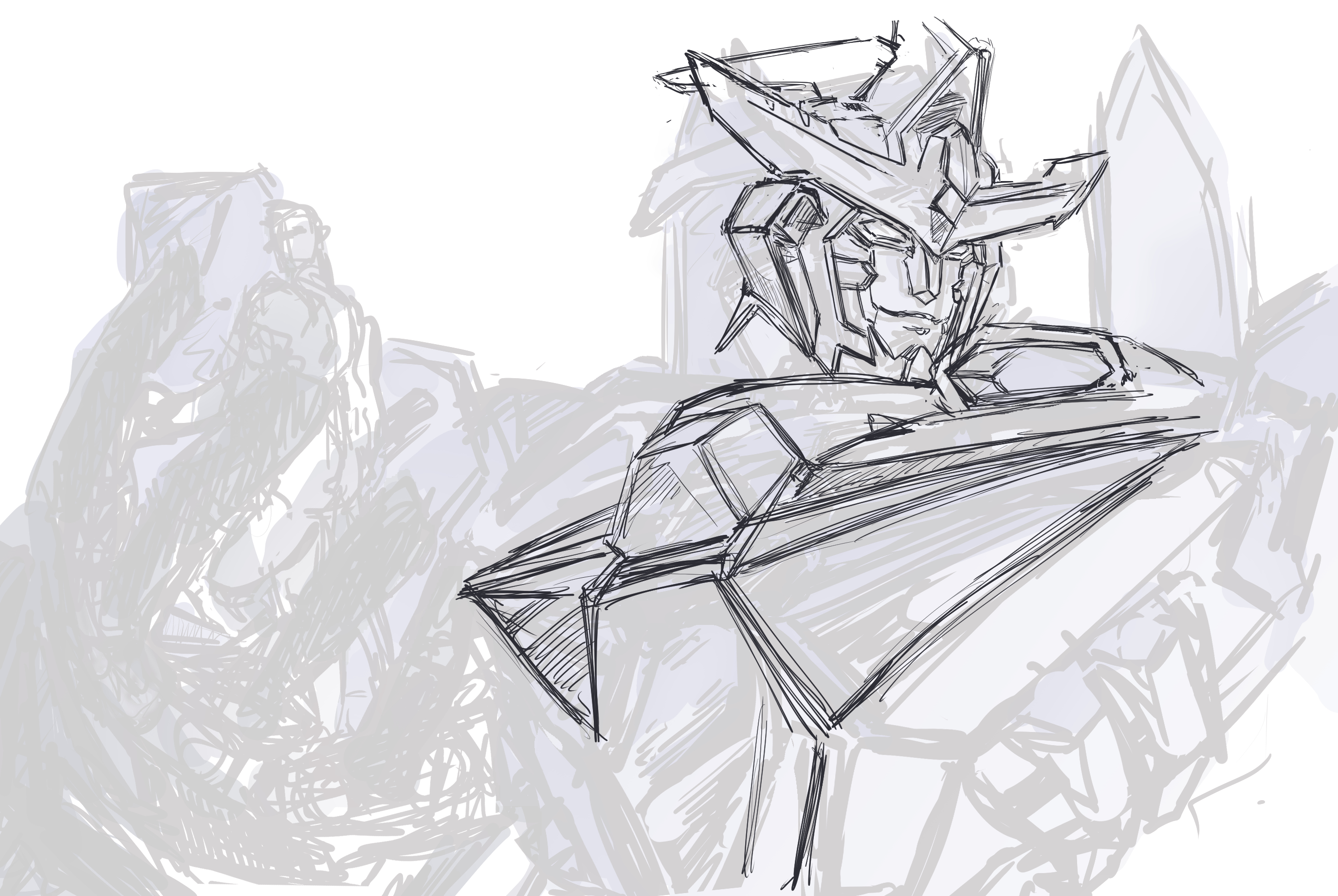 In turn Im in awe of mecha artists and the patience and ability to draw out the insane amount of details. if you happen to be a transformers fujo I look forward to seeing more of your work, its been something ive been looking to get into because the fujo creativity required into working around complex mechanical parts for romance ##and smut## are inspiring. I love the way you cross hatch metalic pieces and the concise shapes you draft out from the rough sketch!