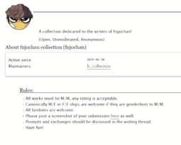 Also I'm not sure how you'd determine someone isn't from fujochan unless they're posting het or obvious troll fic. That said, I think you can create a collection that allows works to be approved before they're added to a collection if it matters.