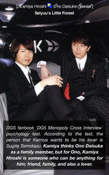 >>12075All their coworkers joke that Sugita and Nakamura are dating all the time. Fans too. It's old but on the Seiyuu Little Forest blog on tumblr there was a lot of trivia about how they're often holding hands when they're recording or even in general or how Nakamura let Sugita live with him for a few days just because Sugita felt lonely and then he kicked him out because he was annoying, but Sugita kept sleeping in his apartment several times a week anyway. When Nakamura recorded his first BL drama CD Sugita he wanted to get the other main role in that one just because Nakamura was one of the main roles. The same Japanese magazine that outed Sakurai as a serial cheater among other serious scandals tried to start shit with Nakamura by accusing Nakamura of being problematic for making dick jokes while streaming GTA5 and teaching other players how to poop in-game last year, and everyone's reaction to that was "we dgaf, please just take pictures of Nakamura and Sugita secretly going inside a love hotel already" so there's material. It's been a while since I kept up with OnoD and HiroC but from my memories Nakamura and Sugita are even closer.