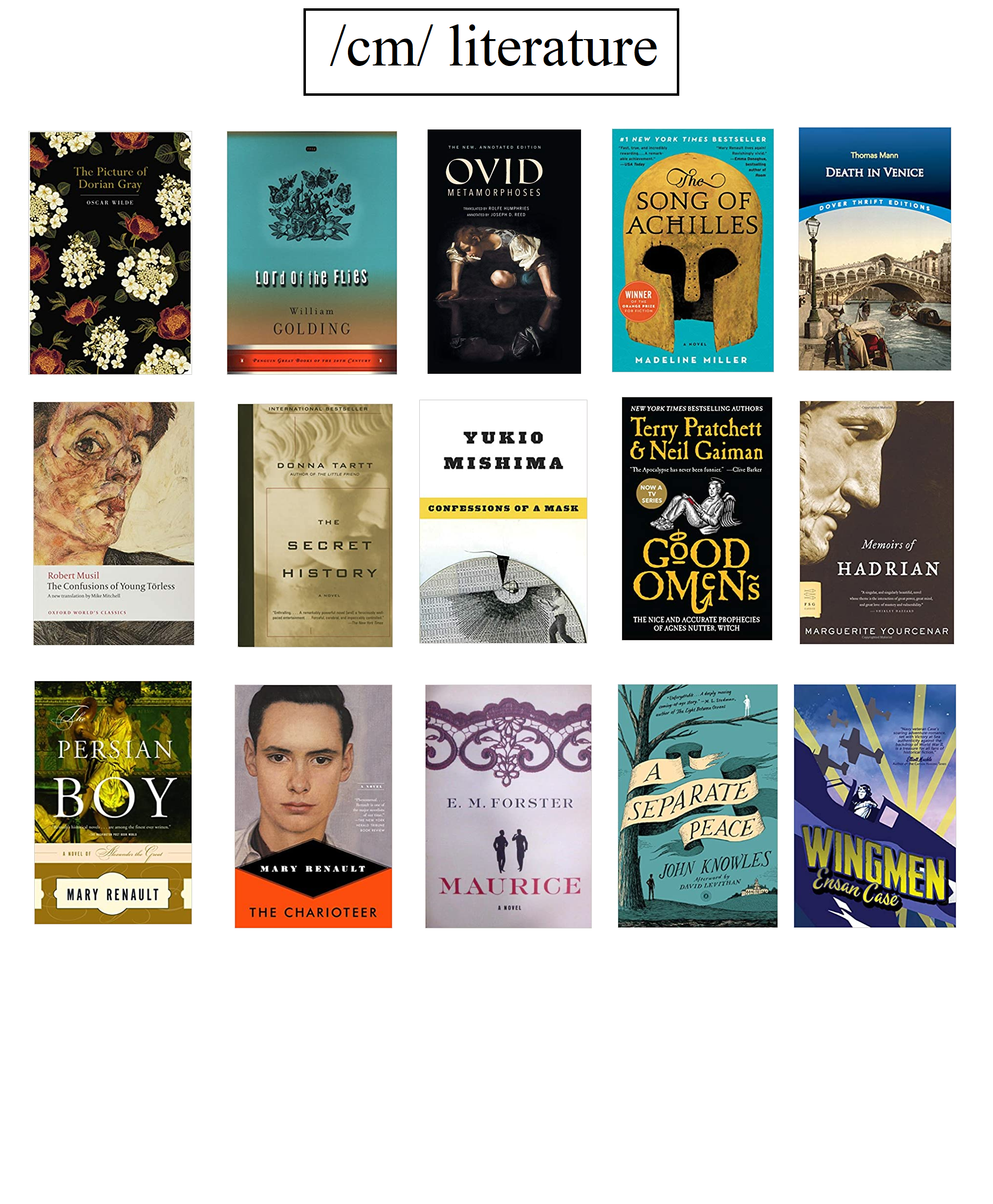 if you're insanely biased like me, Moby Dick (and many of Melville's books), more of Mary Renault's books, The Great Gatsby, Demian, Les Miserables, and The Iliad are all fujo-friendly books which are conspicuously missing. Those are just the ones I can think of offhand. I'm sure other nonas and I could think of a few more.