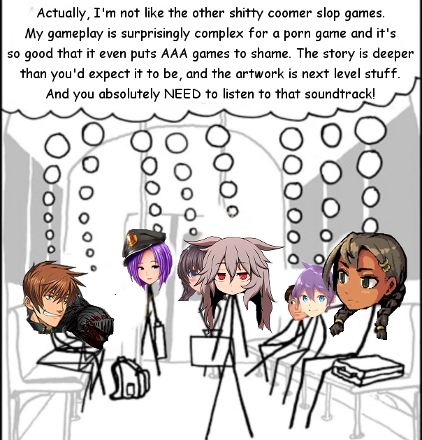 Also Rance is literally like an amalgamation of all the moid anons at 4cucks or rather what they wish they could be, including the humor. To the fujo that asked if Rance has good male characters… Lol, lmao even.