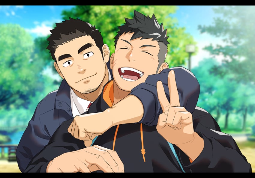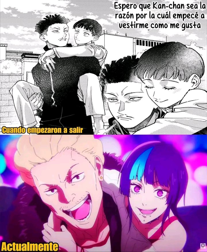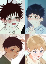 >>12992>Which JJK ship is it?Naoya/Toji. The ship acc is doki_66_44 and her manhwa acc is wowyang_. The coloring, general physical dynamics that align with her stuff (younger top/muscular, black haired bottom), the way she draws younger characters is what confirmed it the most for me though. Pic rel, the way the faces are shaped is distinctive Imo. I'm figuring she may just know JP, since it's existed since late 2023 (KR acc since 2019), and has been posting in JP since inception, to the point she uses it in pics too.