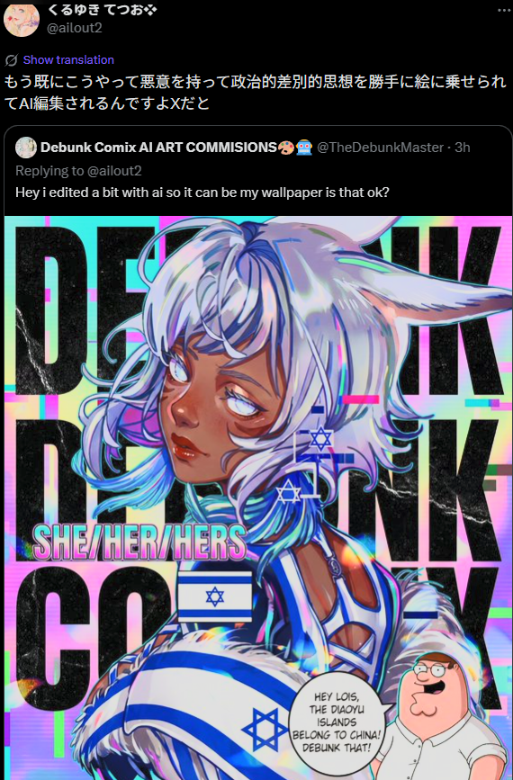 >>13047>But even Asian fan accounts are not safeYeah I've been dealing with this too lately. At least most of them will tag it so I've been able to add it to my blacklist but I had to block one chinese artist showing up in my otherwise good algorithm who just put it out there without any sort of tag or poipiku barrier.
