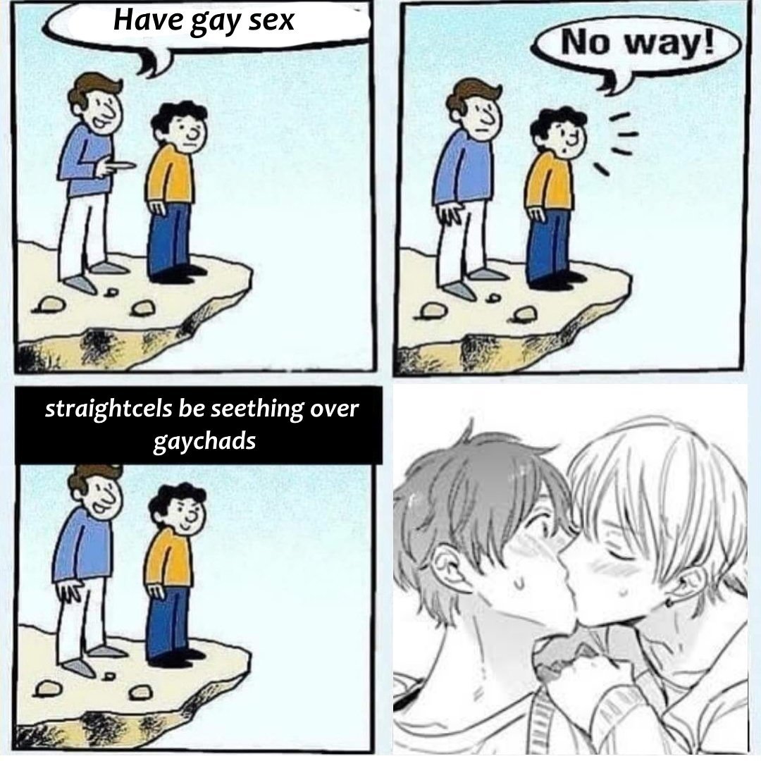 It might be funny cuz "oh moids act gay" to some, but they don't act gay in the way I WANT THEM TO. See? If it's not seme/uke unhinged yaoi dynamic but uoohh trap manga BBC and what not type stuff instead I'm just repulsed.