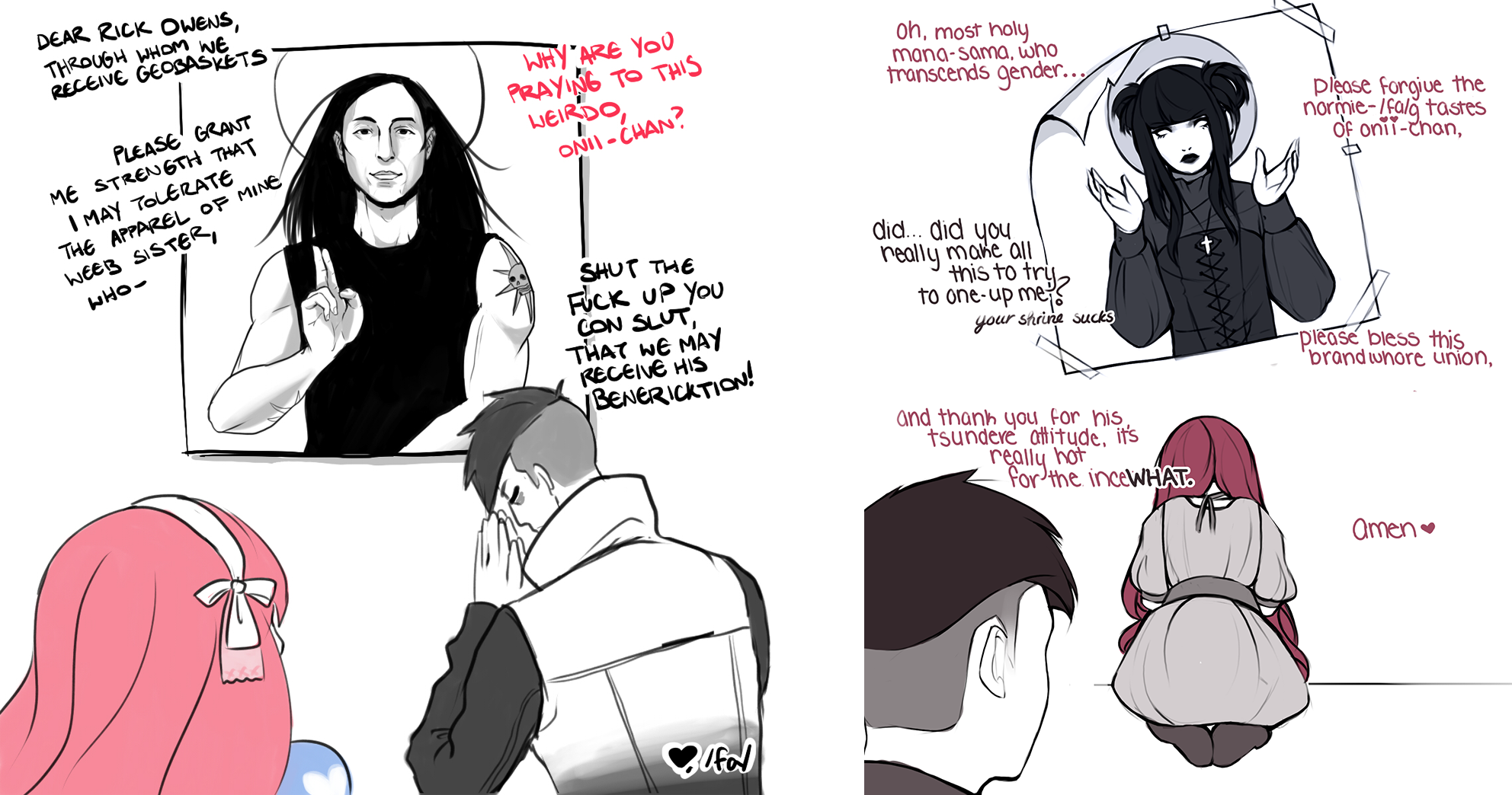 >>2345I tried a few years back after finally getting fed up with the /pol/tards shitting up 4chan… and I got permabanned in a week for "being a male" since I went against the grain and defended an ecchi anime. It would have been 2017ish so I was still a retarded college student on a anti-SJW tirade (something I regret and look back on with shame) and I do believe I was probably overly confrontational, but I'm still bitter about being labeled a man for my interests. I can sit down and watch a fanservice-filled ecchi harem show and then read BL later that same evening. I get its not everyone's cup of tea, but me enjoying it doesn't mean I'm a lesbian or man. Having diverse interests isn't a crime. Though I do end up in rarepair hell since I end up shipping harem protag with the single other guy in the otherwise female cast. Lol