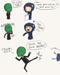 I don't remember the exact contents of the posts, "something, something, who cares about pantyshots" probably, but while I'm sure it was annoying I'm positive it didnt warrant such a harsh punishment and I don't think my post history would have indicated I was male. Terrible first impressions, sorry if it's your favorite site but I'd much rather be where I can post about whatever series I want.