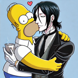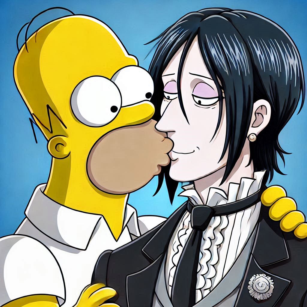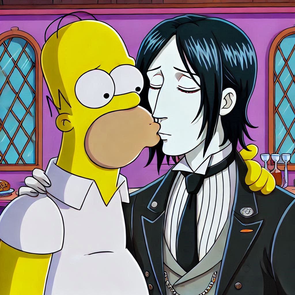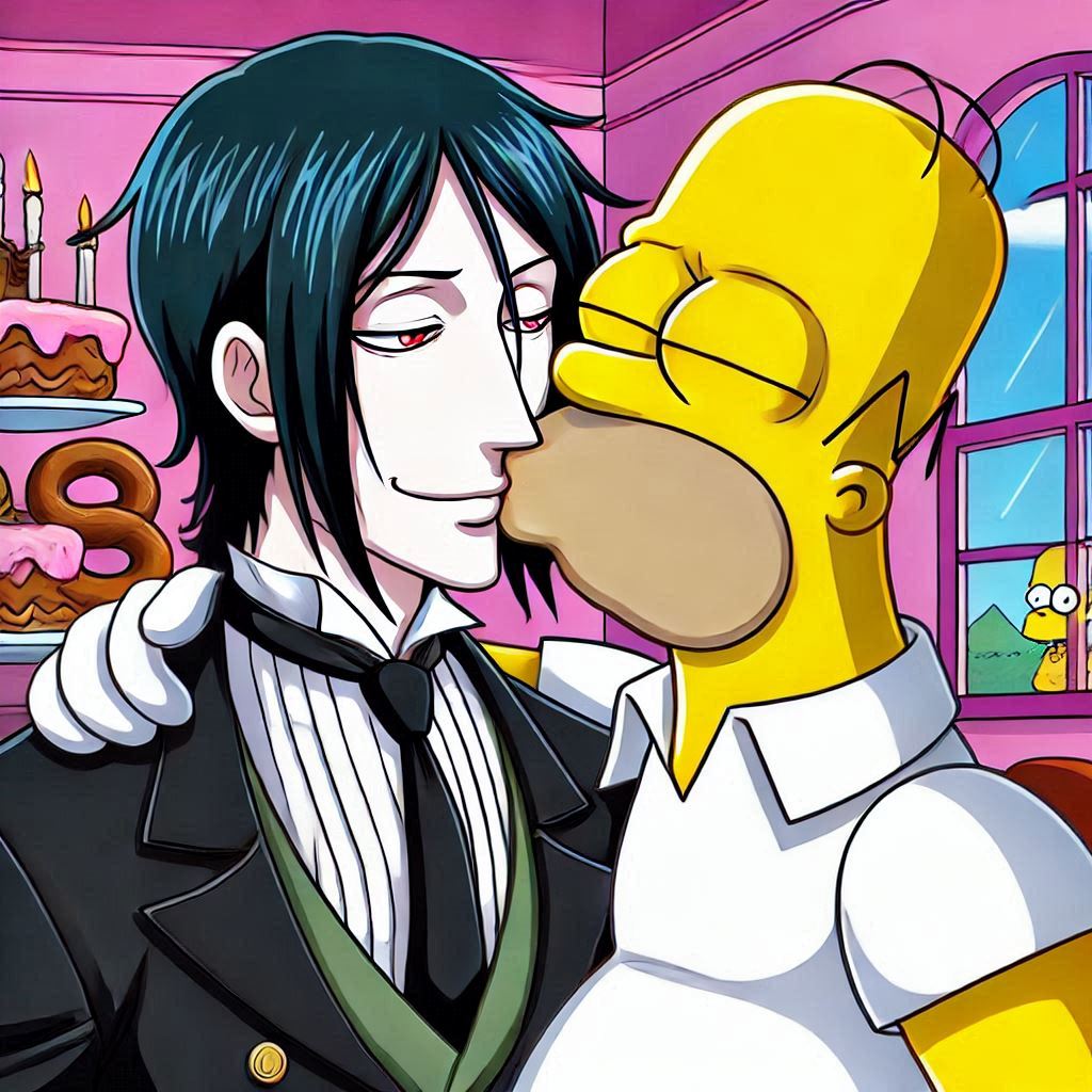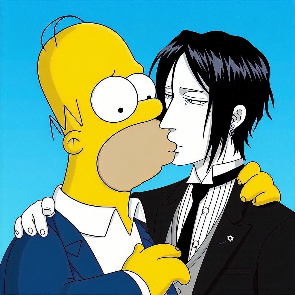 With a mix of nervousness and excitement, Homer leans in and gently kisses Sebastian on the lips. It's a soft, tentative kiss, full of warmth and affection. Sebastian responds in kind, his eyes closing as he savors the moment. As they pull away, both Homer and Sebastian are left with a sense of wonder and happiness.