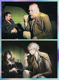 >>8493>>8494Kek, I love retarded crack pairings. So I made AI write a small fic about their first kiss: