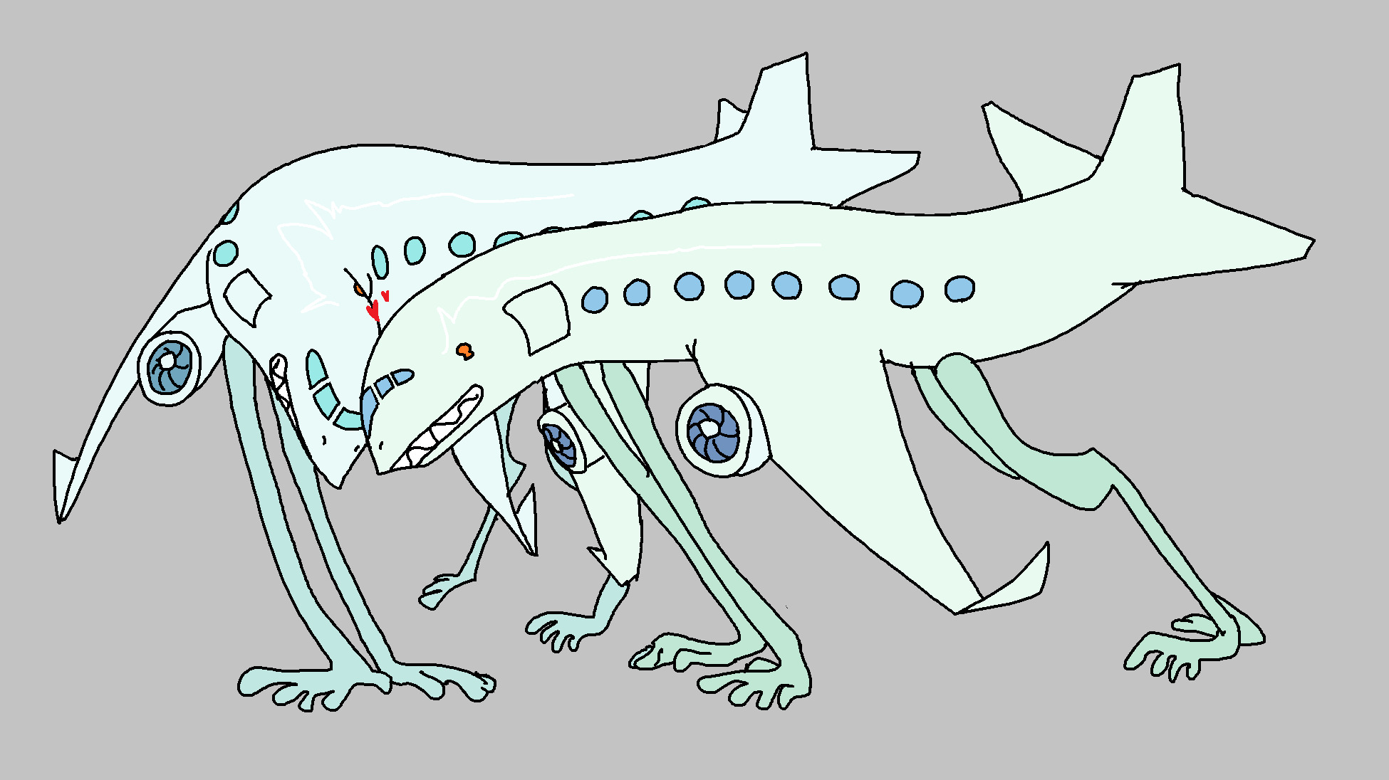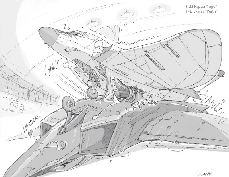 Helicopter-San really is having a good time gettin' inside Plane-Kun.