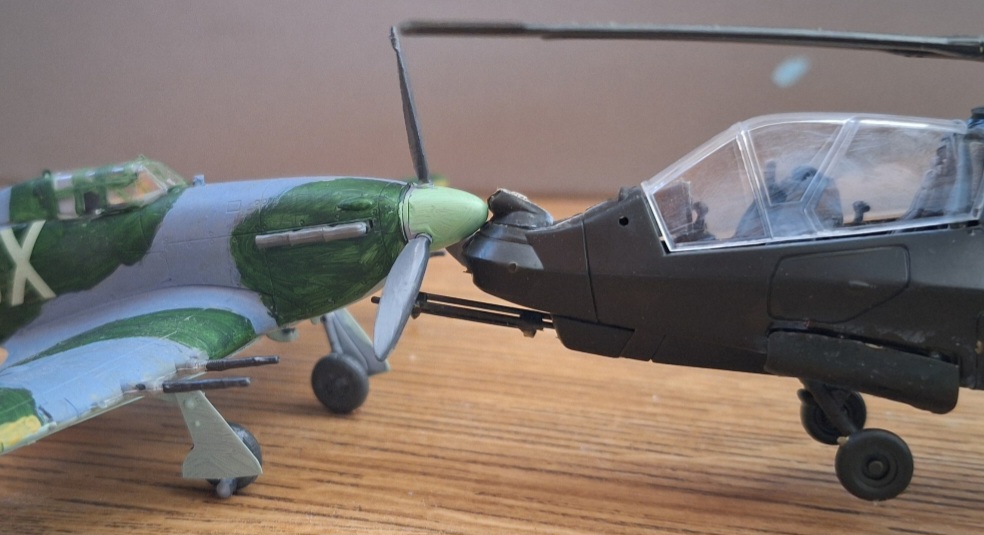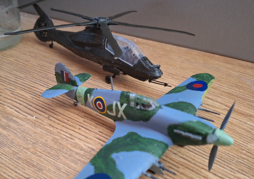 I'm getting into the hobby of building aircraft model kits, it's cute to make the small things you build kiss. I'm still a very big newbie, those are my first two (Hawker Hurricane IIC and RAH-66 Comanche). They're both 1:72 scale, so they're proportionally sized to each other. Comanche is still not painted though. [spoiler]Hawker is the uke, Comanche is the seme.[/spoiler]
