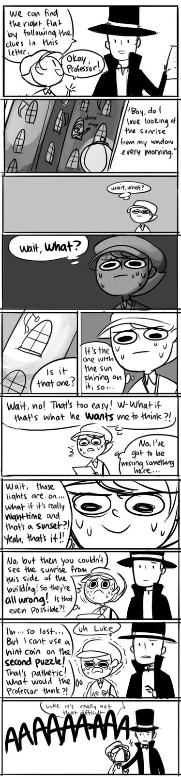 > It's like online fans have completely forgotten how to have fun.That's my problem with being online in public spaces, and you can't forget that people get mad at you for every little thing, too. It hurts more in smaller fandoms like Layton because since the games are more dead/less popular, you keep seeing the same two or three people over and over, and they kinda end up making their own rules for other people to follow. (Spoilers for Unwound Future)