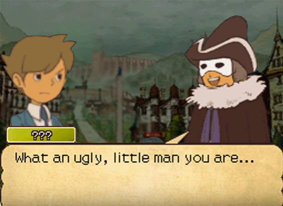I'm not a fan of the "terrorist organization" plotline, and I didn't like how Miracle Mask had that too. Actually, I have a lot of problems with Miracle Mask, but this is about Azran Legacy, so…. yeah. Apparently the whole cast dies at the end of Azran Legacy and just get revived with some weirdass magic? And then there's SO much shit, like "oh, Descole and Layton are brothers now… and they have a connection to the terrorist organization! AND Emmy betrays the leads because we need a way to write her out of the story! AND Layton is actually adopted, and does some name-swap thing!" Like you've said, all the games have bullshit plot twists, but it seemed over the top from what I've read. By learning more about a certain character, did you mean