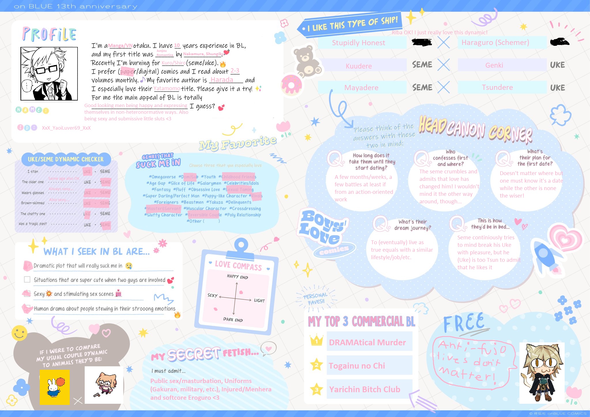 Some of these I wasn't sure on since while I've seen black butler and yarichin I'm not a fan of them and while I like some 3DPD ships I'm not into 3DPD gay movies like call me by your name.