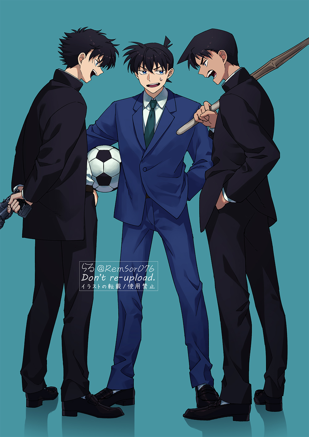 >>7924Personally I would first focus on two of them, like the topping front guy and what he's doing with the sandwiched dude. Like how he kisses or holds him and how he starts rubbing his dick or something and sandwich-kun's reaction to that while I would reduce the third guy that fucks him from behind do a dildo first. So the middle dude reacts to first guy and to a penetration or whatever is going on and after that part is done I would define what else the other dude is doing and how he's touching him. After you have both it's easier to combine into a proper story I think. I should actually try it myself, I my current "OTP" is kind of a threesome as well.