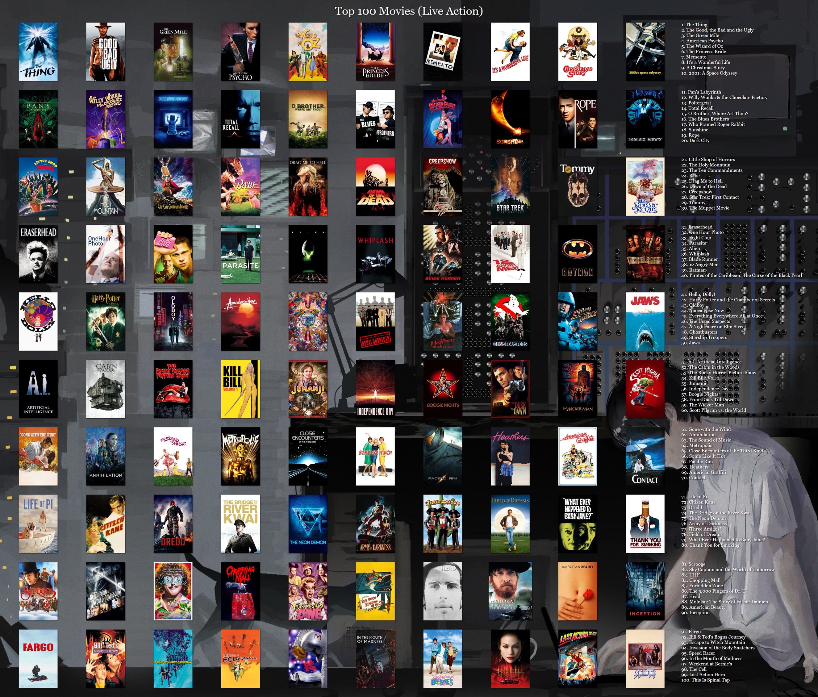 >>7336I have a top 100 chart O made a while back that I'll post when I get home, but my favorite movies are John Carpenter's The Thing (I'd also rec most of his filmography) and The Good the Bad and the Ugly.