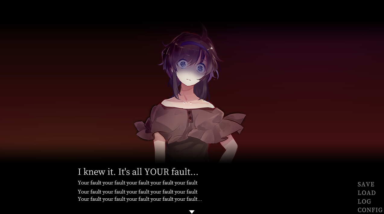 >Higurashi had a slow burn opening it was way more captivating from at atmosphic angleWhile it's not my favorite denpa VN, I feel like the rural setting and sound design really helped Higurashi. If Echo has a boring setting, ugly characters, and bad writing, it doesn't leave you much to enjoy. The VNs I've hated the most were ones I just found boring as opposed to those I found aggressively bad. It's sad that it sounds like Echo is in that category. I hope it at least becomes funny-bad for you instead of boring-bad.