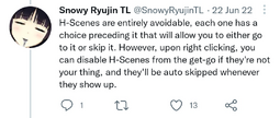 >Do those version ever make it to the fan translation scene?Yes! While it's kind of a moot point now that FSN has an official release, the Realta Nua version (originally for PS2 iirc) was the basis for the fan patch that let you toggle sexual content, as well as get the additional scenes from that version (Realta Nua added scenes and had some other better qualities over the original, but omitted the sex scenes since it was on console). AIR is another example; there's a Vita patch available that cuts all the adult content. I think the Killer Queen remake is also getting a fan translation, and last I saw, it's specifically the Nintendo Switch version, which doesn't have sexual content.